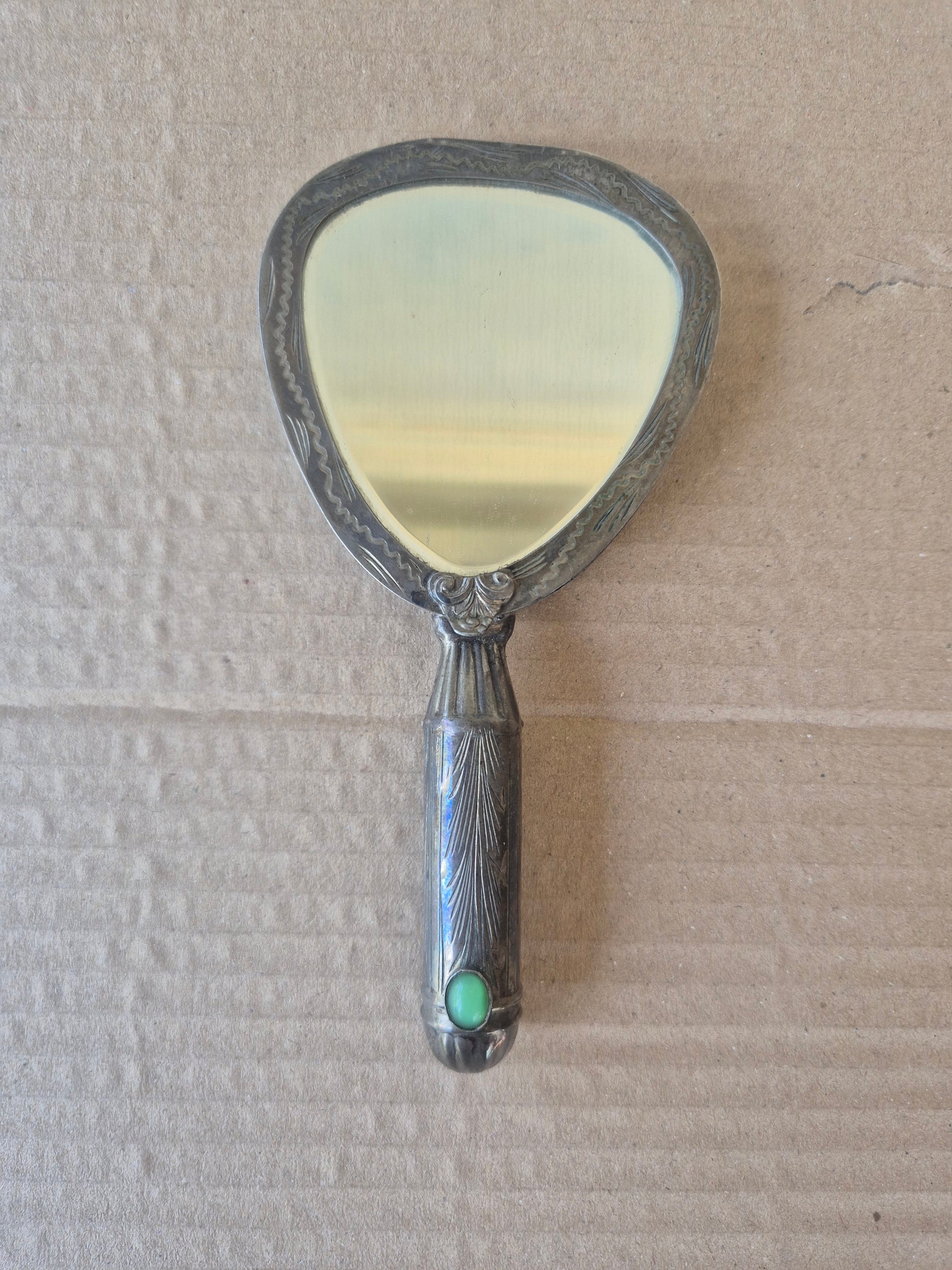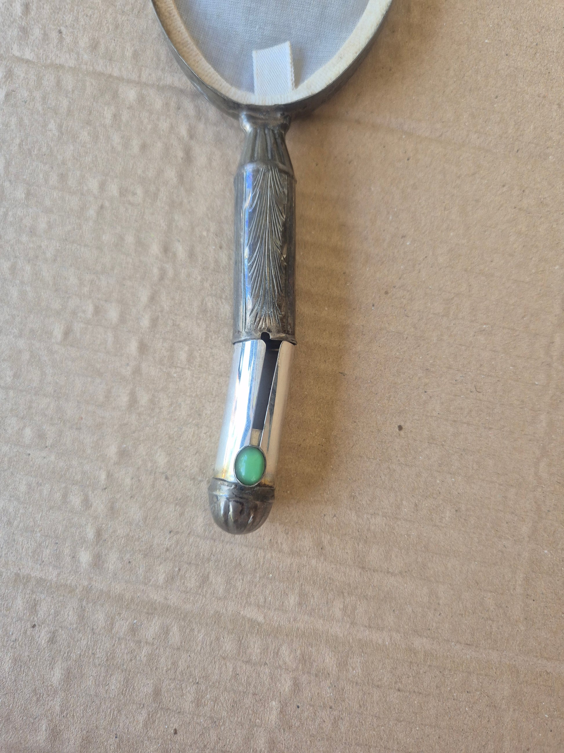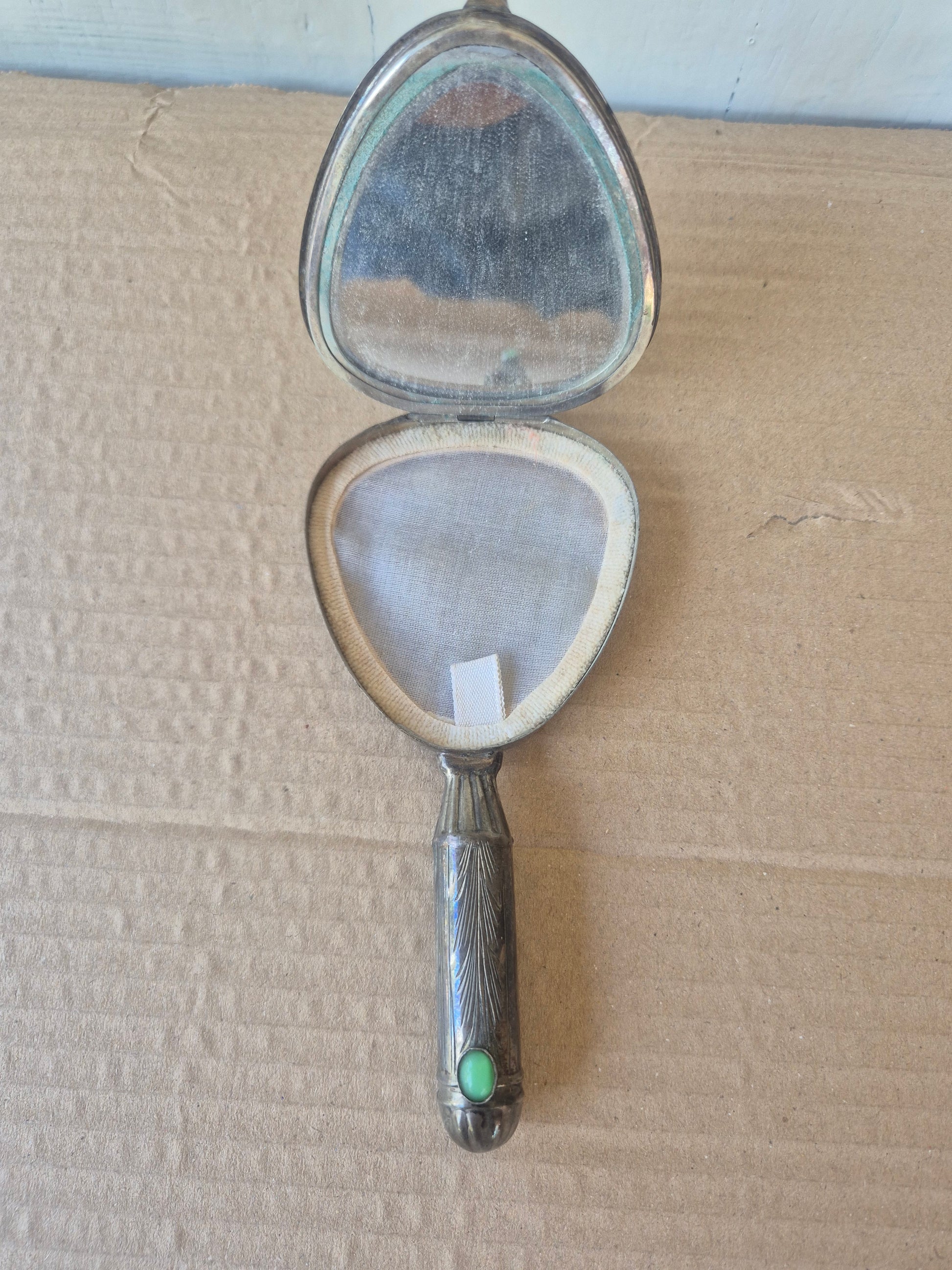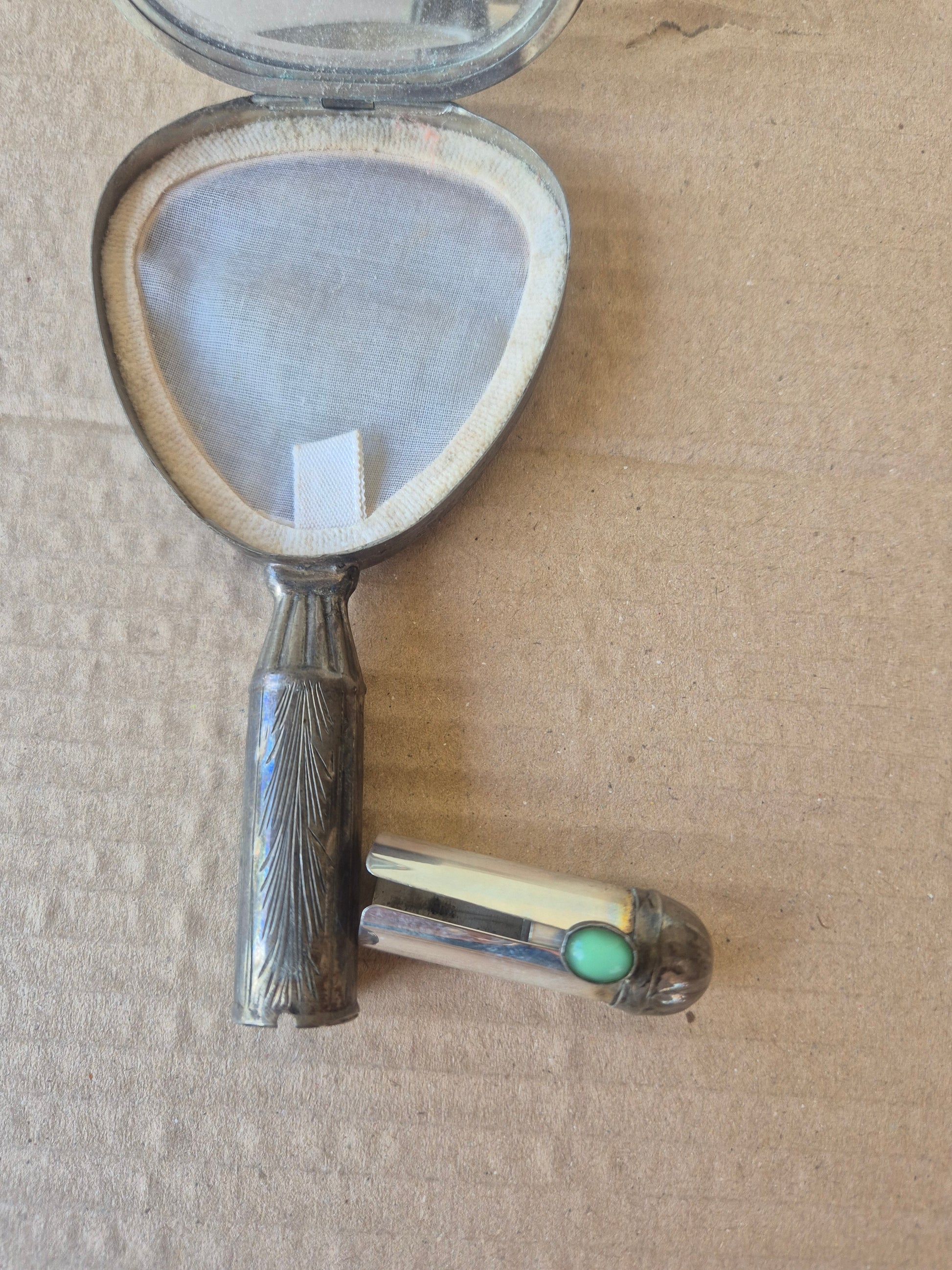 Specchietto da viaggio con porta cipria e rossetto anni 40 lungo 13 cm largo 7cm